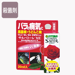こうしたバラの黒星病、うどんこ病の専用薬として予防と治療効果が期待できるのが、ハイポネックスの殺菌剤「brilliantgardenフローラガードAL」と「brilliantgardenサルバトーレME」。浸透移行性により、有効成分がすみずみまで行き渡ります。