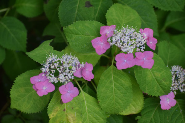 アナベルの中を進むと「やまあじさいの小径」になります。ヤマアジサイは日本原産のアジサイで、産地によってさまざまな花があります。地味で開花時期もさまざま、なかなかすべてを見ることは難しいのですが、多くの品種が植栽されて、それぞれの花を比較してみることもでき、木にはイワガラミが絡んでいたりして、ナチュラルな雰囲気もあって、私的には大好きなエリアでした。