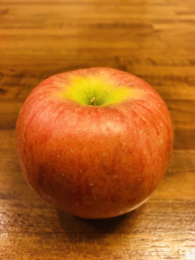 名前の通りちょっとスリムで、縦長なりんごです。 味は、カリッとした歯ごたえで食感がよいです。 このりんごは甘酸っぱいりんごの種類です。
