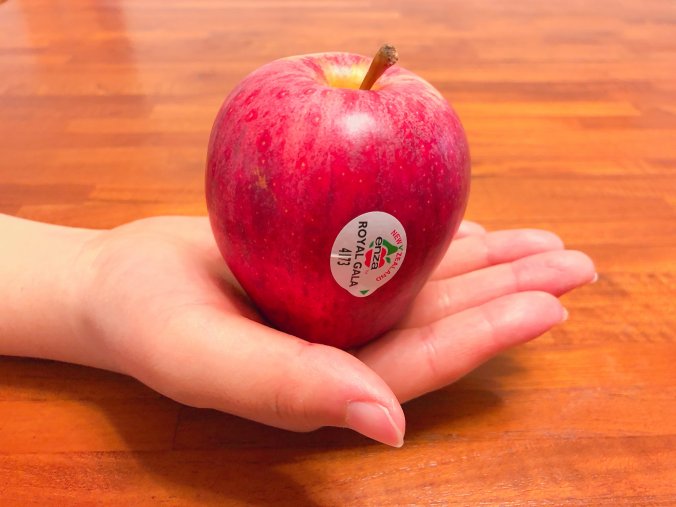 ロイヤルガラはすらっとしたスリムな形で、少し小さめなりんごです。世界中で栽培されて、海外では基本的に丸かじりのりんごなので、この大きさで納得です。