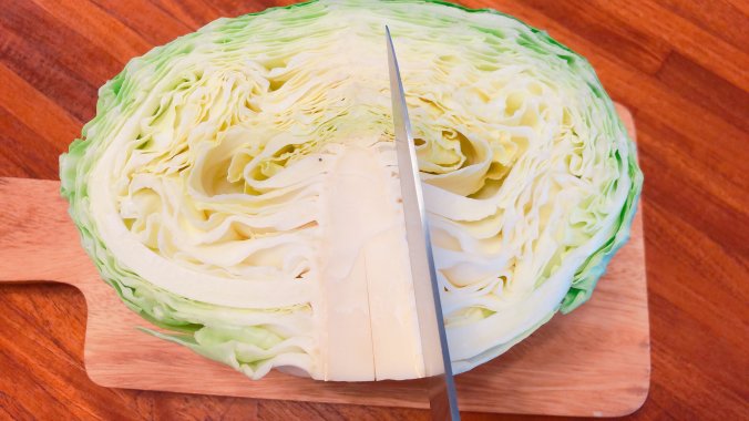 キャベツの芯は、捨ててしまいがちな部分ですが、キャベツの芯には葉の約2倍のカリウム、カルシウムが含まれています。芯には葉よりも栄養や甘みがあるのは、キャベツが成長するため葉から芯へ栄養が送られているので、芯が栄養の貯蔵庫になっているからです。芯の底部と維管束がある茶色い部分はにおいが少しあるので、芯の下2㎝ほどはカットすると大丈夫です。硬さを活かしてきんぴらなどにすると良いです。