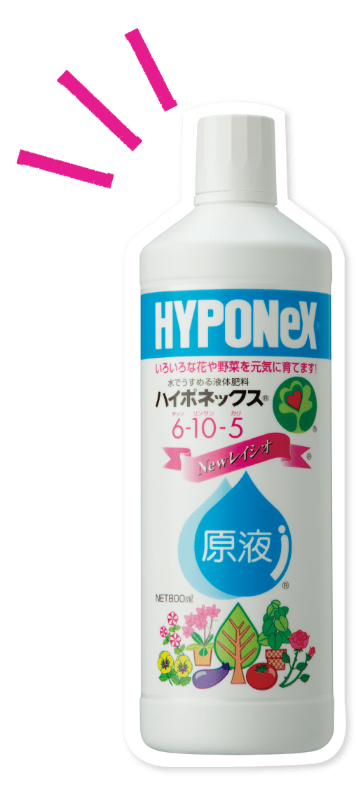 市場ニーズの変化に合わせ3要素の比率を「6-10-5」に変えるなどリニューアル。実はこのとき商品名も「原液ハイポネックス」→「ハイポネックス原液」に進化。