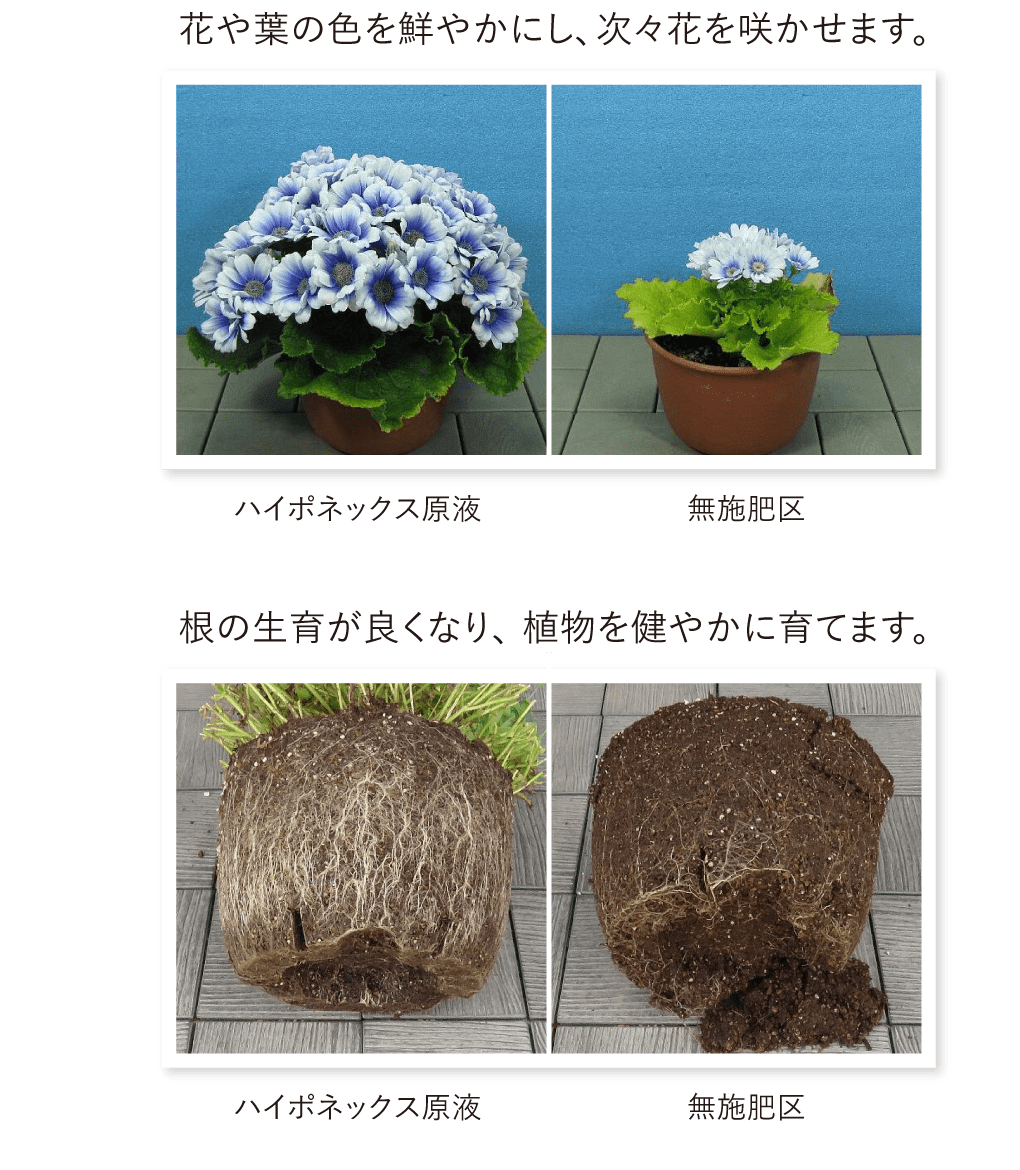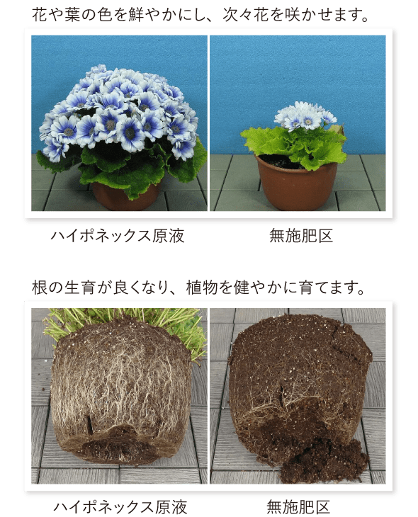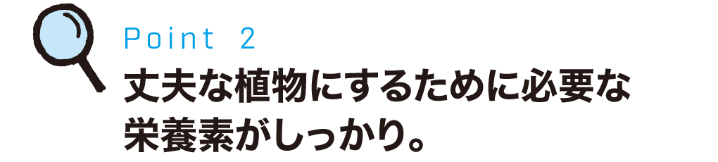 植物が生き生きと育つのに必要な微量要素、ビタミン、カルシウムを増量しました。また、土を選ばないため、根の生育にも効果を発揮します。